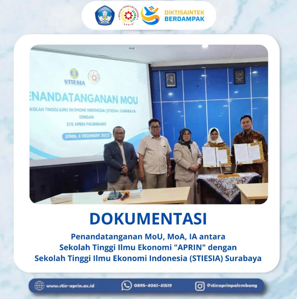 Sekolah Tinggi Ilmu Ekonomi “APRIN” secara resmi menjalin kerja sama strategis dengan STIESIA Surabaya melalui penandatanganan MoU, MoA, dan IA sebagai komitmen bersama dalam penguatan pendidikan, penelitian, dan pengabdian kepada masyarakat.