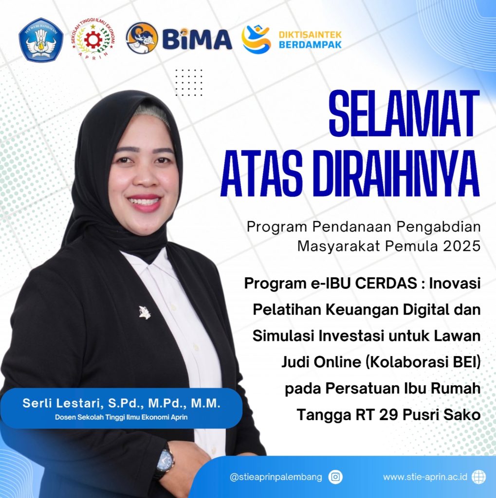 STIE APRIN mengucapkan selamat dan sukses kepada Ibu Serli Lestari, S.Pd., M.Pd., M.M. atas diraihnya