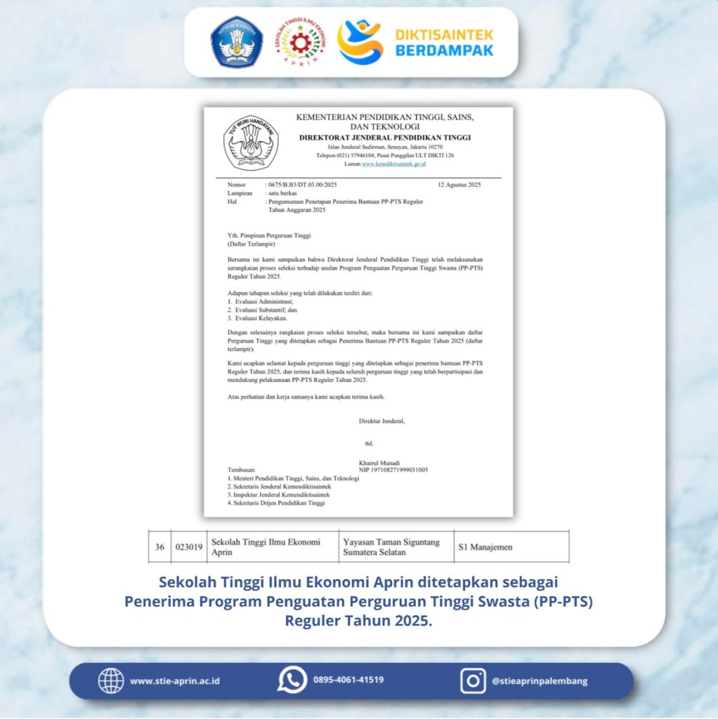 🎉✨ Selamat & Sukses ✨🎉Sekolah Tinggi Ilmu Ekonomi APRIN ditetapkan sebagai salah satu penerima Program
